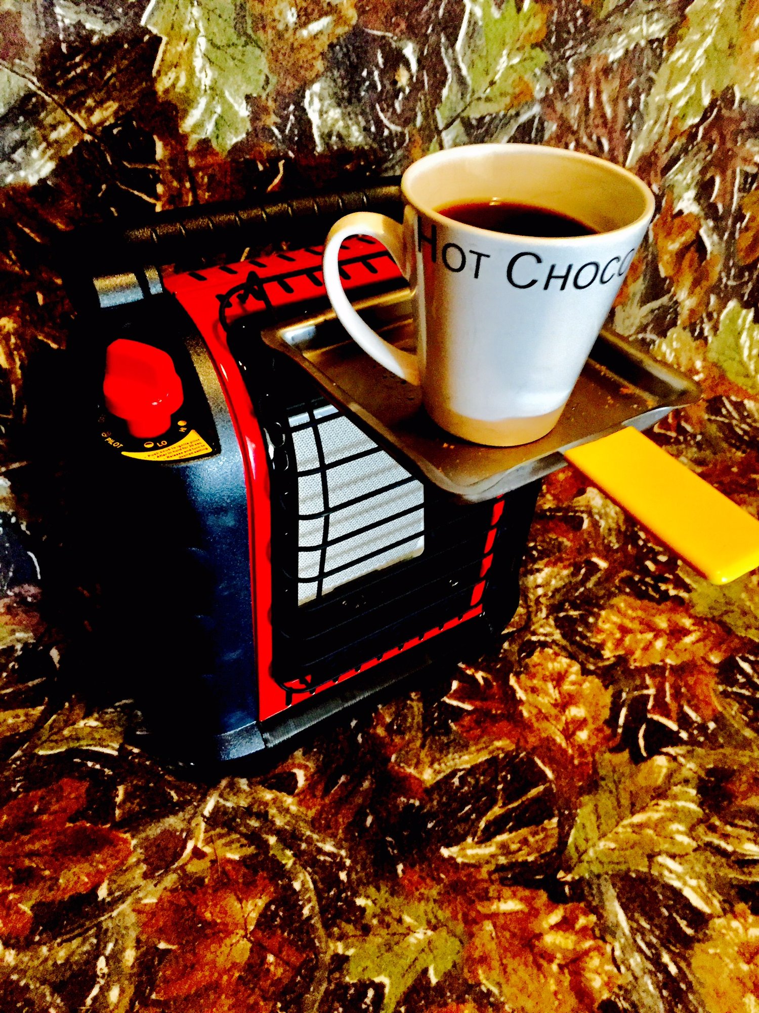 We are taking the heat from your portable heater and directing it to our pan. It will not only keep you warm, but it will also keep your food and beverages warm as well. Take a look at our product pictures and see how it can work for you.